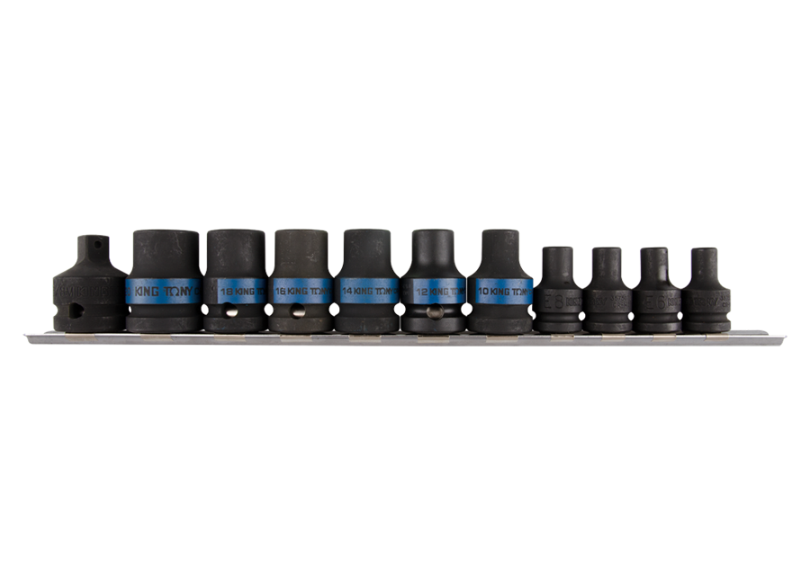 Jeu de 10 douilles Torx E à choc + accessoires en rail E5 à E20