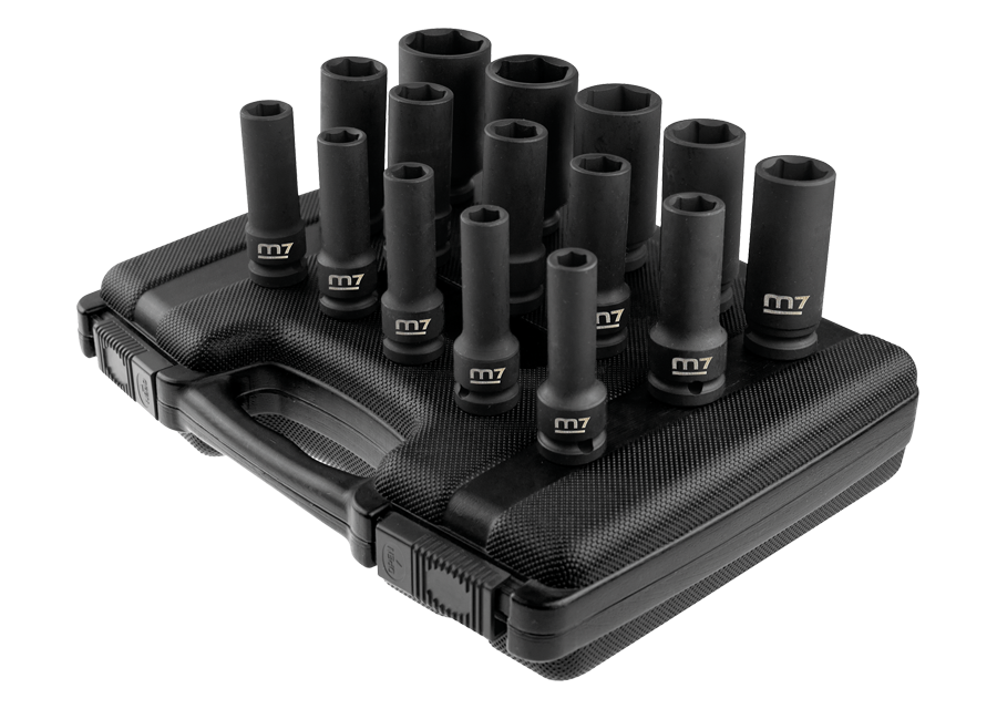 M7 – Coffret de 15 douilles longues impact 1/2″ – 10 à 32mm